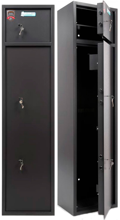 ►толщина металла корпуса и двери – 3,5 мм оборудованы патронным отделением, запирающимся на ключ, полками и ложементами для ружей (посмотреть ложементы)