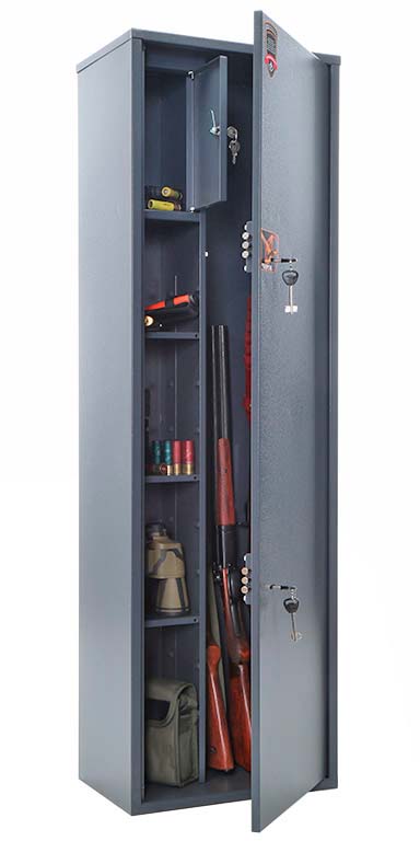 Предназначен для хранения огнестрельного оружия. Сейфы соответствуют требованиям ст.59 Постановления правительства РФ №814 от 21 июля 1998 года «О мерах по регулированию гражданского и служебного оружия и патронов к нему на территории РФ».