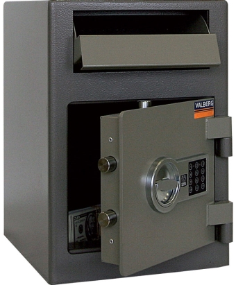 Депозитные сейфы: Для хранения наличных денег в магазинах, пунктах обмена, кафе и ресторанах, торговых точках, автозаправках, везде, где необходимо ограничить доступ к наличности, как от злоумышленников, так и от обслуживающего персонала. Выручка или документы закладываются в сейф через лоток, а открыть сейф и извлечь содержимое может только администратор (инкассатор). Конструкция сейфа не позволяет изъять содержимое через лоток (установлено антифишинговое устройство), а дверь защищена надежным замком, таким образом, депозитный сейф практически исключает хищения. Также предусмотрена возможность крепления к полу анкерным болтом. Это исключает хищения ценностей вместе с сейфом.