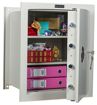Встраиваемый в стену сейф: Одно из самых распространенных решений для хранения документов, ценностей и денежных средств. Широкое применения обусловлено удобством использования и возможностью замаскировать сейф, но толщина стен может быть ограничивающим фактором. Они устанавливаются в стену, что обеспечивает основную защиту от взлома, а защитные свойства самих встраиваемых сейфов определяются только передней плитой.